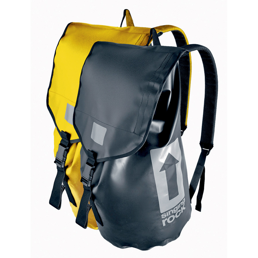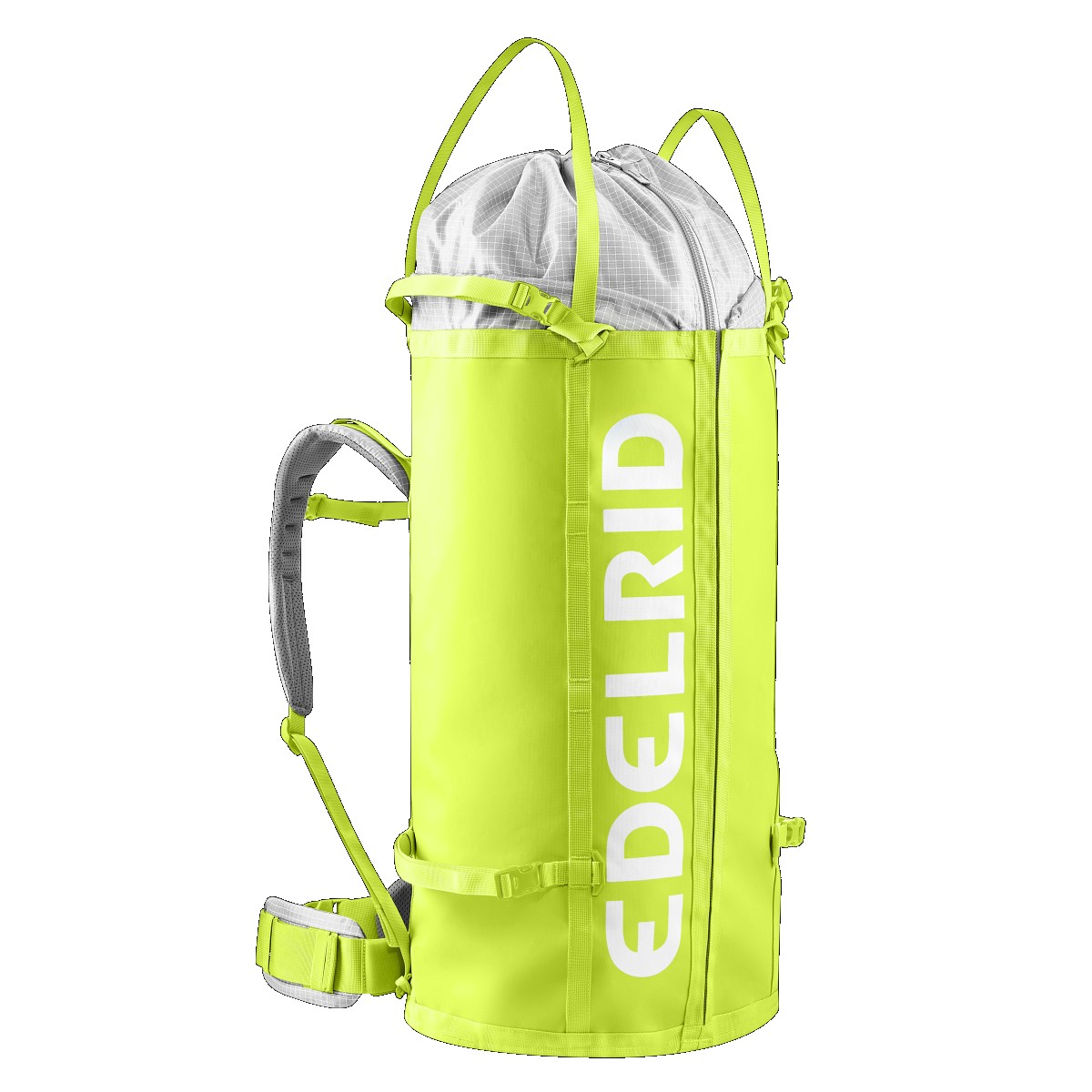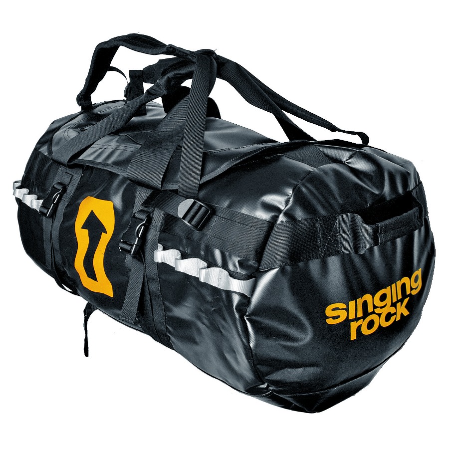 Stabiler Seilsack mit Daisy Chains. Gefertigt aus robustem 1680 Denier PVC. Gepolsterte Schultergurte. Kann als Rucksack getragen werden. Zusätzliche Taschen für Zubehör. Verschließbare Öffnung. Volumen 50 l.